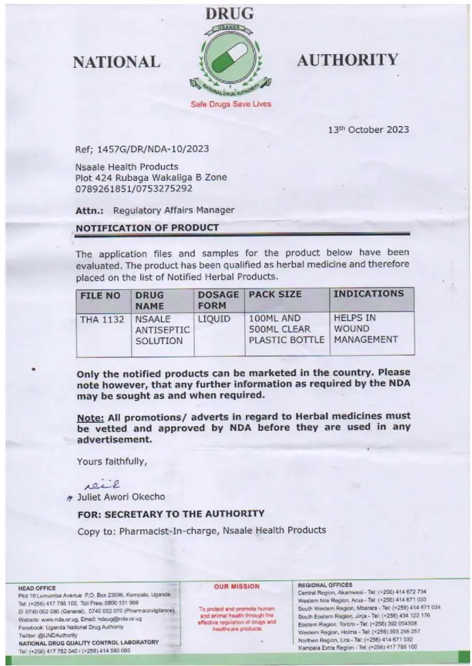 Nsaale Health Products prioritizes good health and well-being of people and the planet to deliver safe and effective breakthrough designations of specialty "First-In-Class" Disruptive and Curative Botanical Innovations" We intend to promote natural health and wellness solutions by harnessing the power of plants to target Skin, Dental, Respiratory, Digestive & systemic Non-communicable diseases (NCDs), etc. holistically. We intend "To ensure good health and well-being for all."